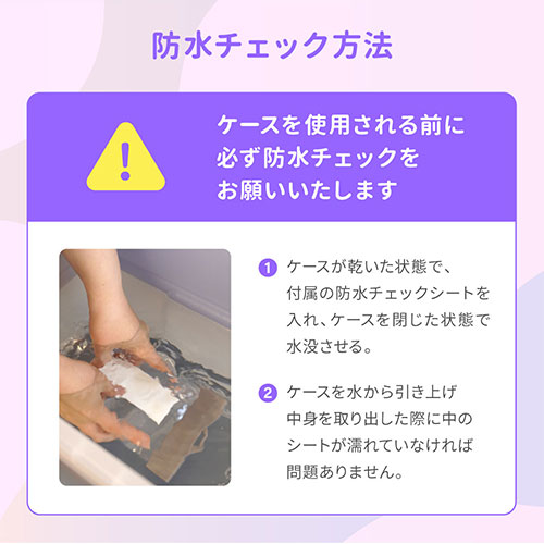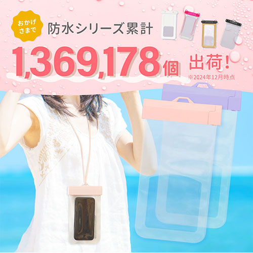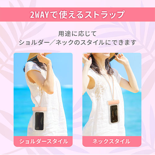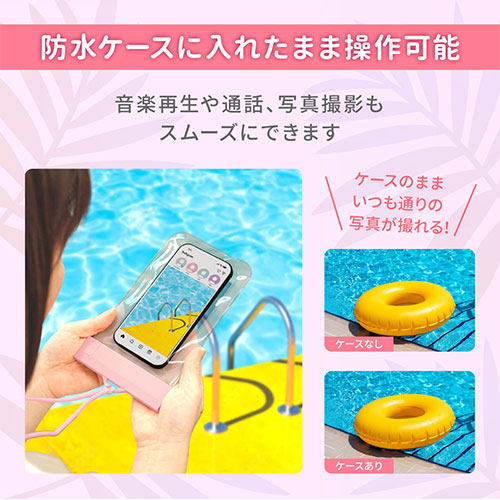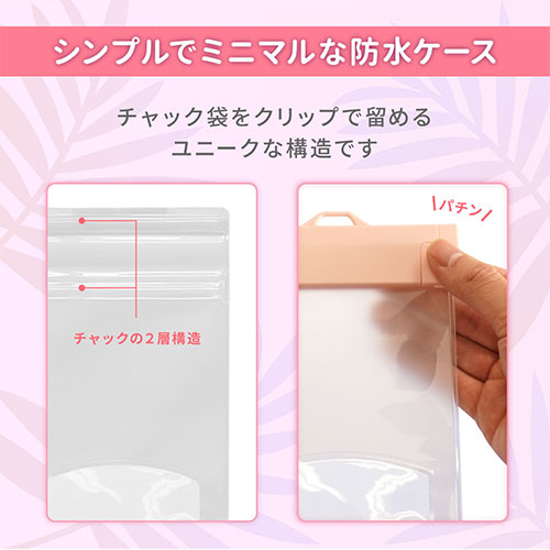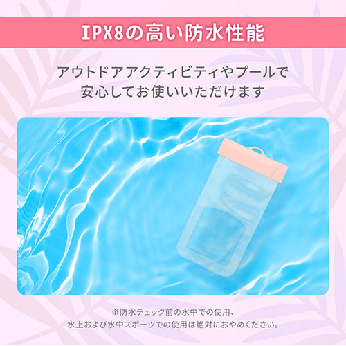 シンプルでミニマルなIPX8取得の防水ケース。スムーズなタッチ操作や写真撮影が可能です。2WAYストラップと防水チェックシートが付属。水場でも快適かつ安全に使える設計です。