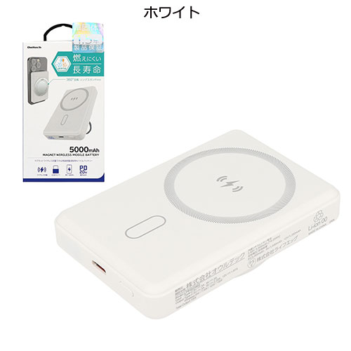 オウルテック デジタル残量表示&マグネットワイヤレス充電対応 長寿命 5000mAh準固体電池採用モバイルバッテリー