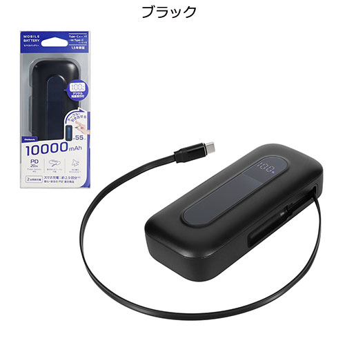 オウルテック 巻き取り式ケーブル内蔵 10000mAh 最大PD20W対応 USB Type-C入出力 モバイルバッテリー