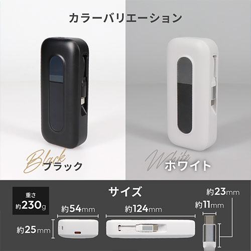 カラー展開 全2色サイズ W約54×D124×H25mm容量 【バッテリー容量】10000mAh重量 約230g機能 【コネクタ形状(出力)】USB Type-Cポート×1、USB Type-Cケーブル×1【コネクタ形状(入力)】USB Type-Cポート×1、USB Type-Cケーブル×1付属品 取扱説明書(保証書付)注意事項 接続する機器に合わせたケーブルをご用意ください備考 【PSEマーク】安心・安全のPSE適合製品です【保証期間】1.5年間