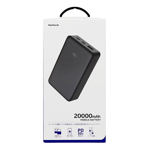 オウルテック 20000mAh 最大PD20W出力対応 USB Type-C入出力/USB Type-A出力 モバイルバッテリー