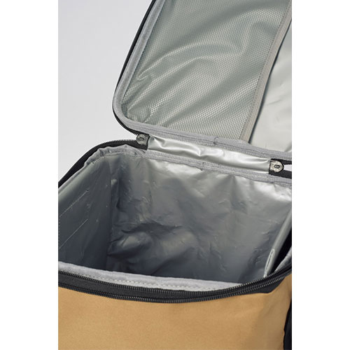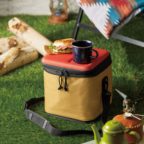 上下面にハードシェルを採用した、折りたたみ式の保冷温バッグ。ファスナー開閉でコンパクトに収納でき、使用時はテーブルとしても使える多機能設計です。キャンプやピクニックに最適。
