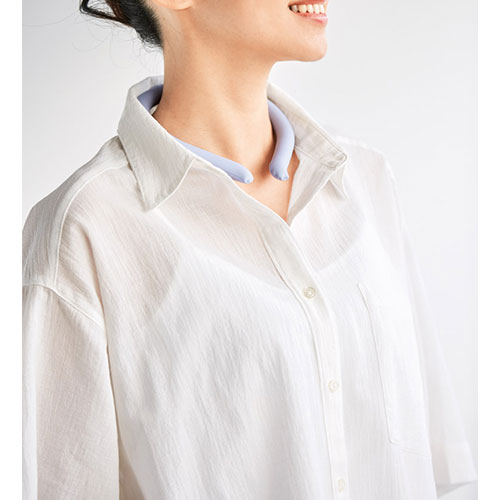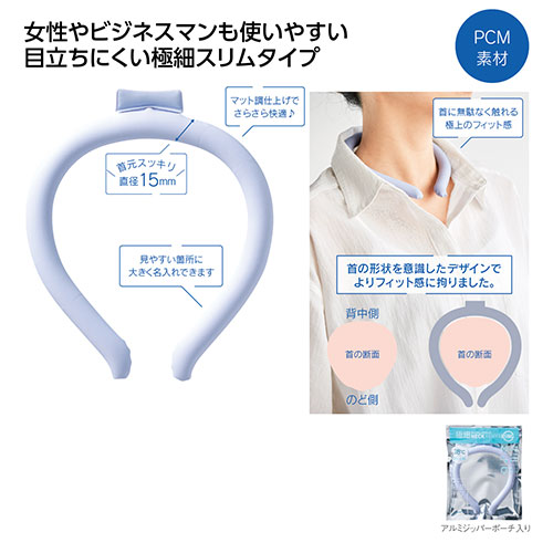 28度以下で自然凍結するPCM素材を採用した、極細設計のネッククーラー。あえて存在感を抑えた目立ちにくいデザインで、老若男女問わず、あらゆる服装やシーンに馴染みます。