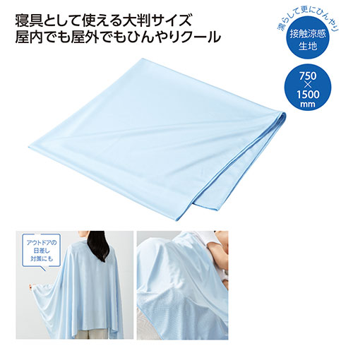 触れるだけでひんやり冷たい、大判サイズの接触涼感クールケット。就寝時の寝具としてはもちろん、アウトドアシーンでも活躍します。水に濡らして振ることで冷却効果がさらに高まります。