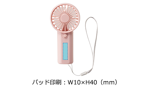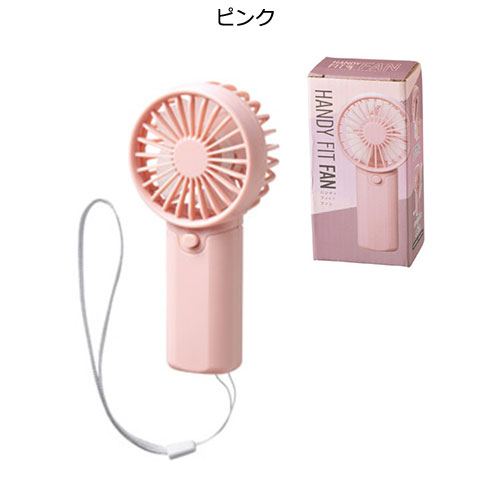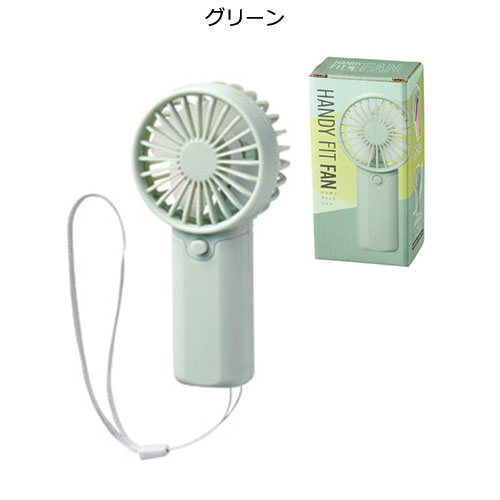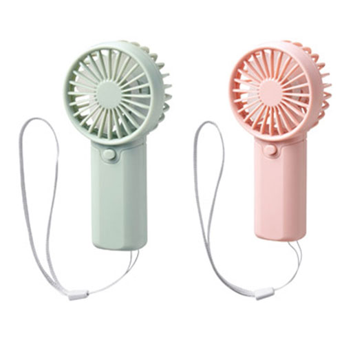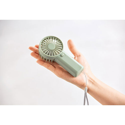 乾電池式で手軽に使える、ストラップ付きのハンディファン。持ち運びに負担の少ないコンパクトな形状で、流行のくすみ系カラーがデザインのアクセントになっています。夏の外出を快適に。