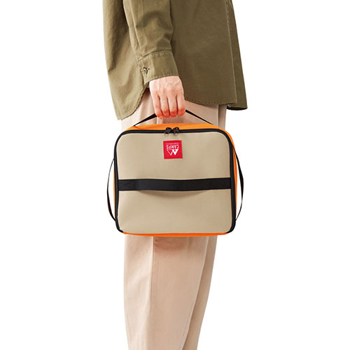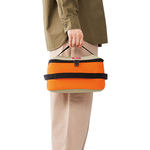 各面に配置されたフリーハンドルが特徴の、画期的な保冷温バッグ。中に入れる商品の形状やバランスに合わせて、入れ方や持ち方を自在に変えられます。機能性と使い勝手の良さを両立。