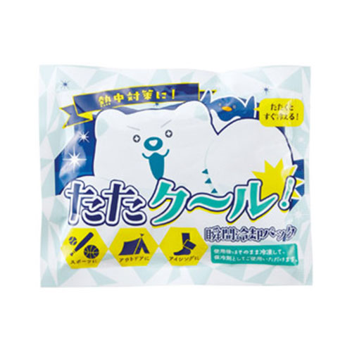 叩くだけで即座に冷たくなる、シロクマのイラストが愛らしい瞬間冷却パック。使用後は冷凍庫で凍らせれば保冷剤として再利用可能です。スポーツやアウトドアの熱中症対策に。