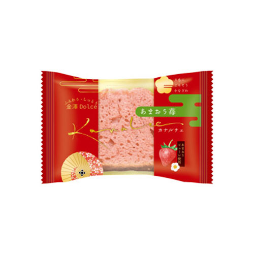 福岡のブランド苺「あまおう」のピューレを贅沢に使用した、しっとりふんわり食感のケーキ。苺の豊かな香りと甘みが口いっぱいに広がります。ギフトシーンにもぴったりな一品です。