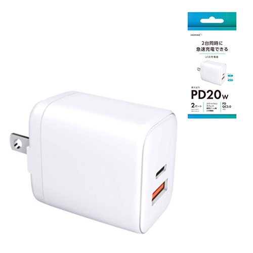 2台のデバイスを同時に急速充電できる、Type-CとType-Aポート搭載の充電器。PD対応でスマートフォンやタブレットをスピーディーに充電可能です。コンパクトで持ち運び最適。