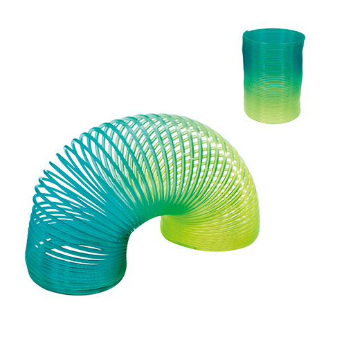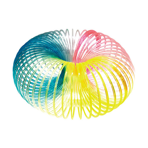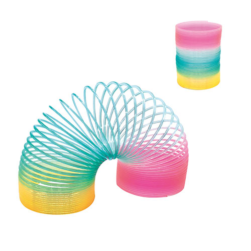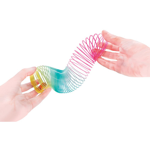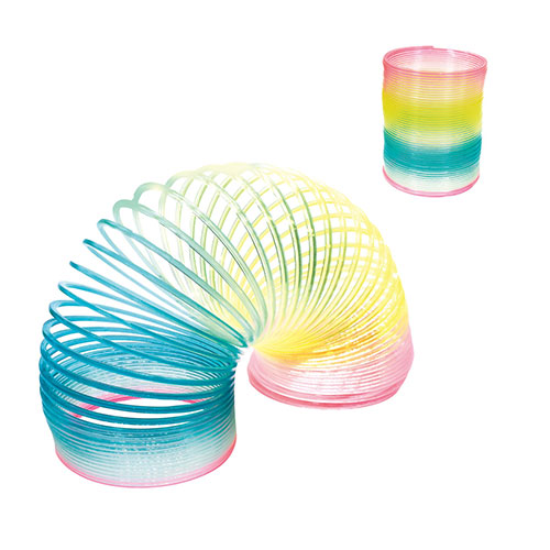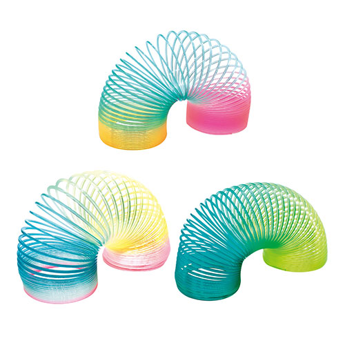 遊び方が無限大に広がる、鮮やかなレインボーカラーのスプリング。伸ばしたり跳ねさせたりと、ワクワクする動きに子供たちが夢中になる人気の商品です。コンパクトなミニサイズ。