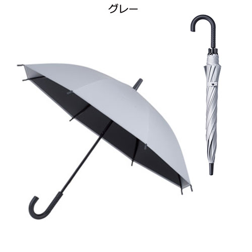 UV遮蔽率99.9%・遮光率99.98%を実現した、ポリエチレン生地3枚重ね加工の晴雨兼用長傘。高い遮光性能で日差しを遮り、急な雨にも対応可能です。男女問わず使いやすいデザイン。