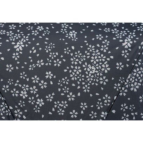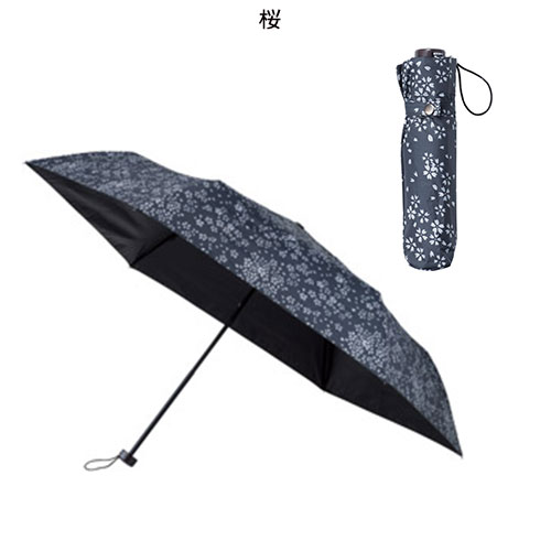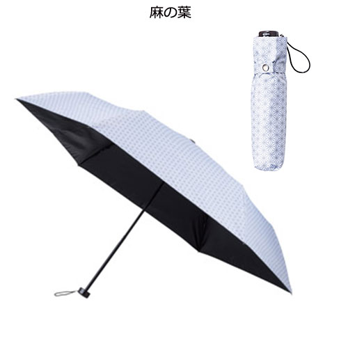 落ち着いたモノクロ和柄が目を引く、晴雨兼用の折りたたみ傘。内側のブラックコーティングが地面からの反射焼けを防ぎ、日差しを強力にカットします。男女問わず使いやすいデザインです。