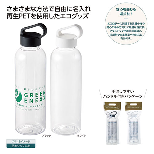 環境に優しいリサイクルPET素材を使用した、容量500mlの定番ボトル。軽くて丈夫なため、毎日の水分補給に重宝します。SDGsへの貢献をアピールできるエコなノベルティグッズです。
