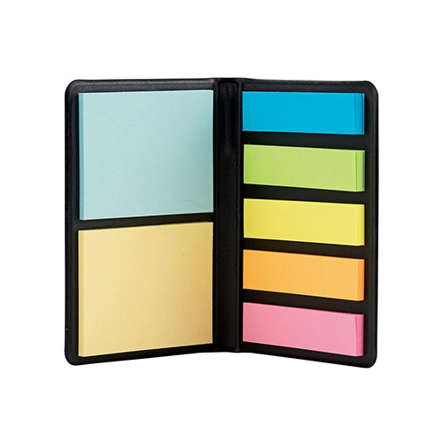 持ち運びたくなるスタイリッシュな手帳型デザインのメモセット。カラフルな付箋で、デスクワークを明るく彩ります。ポケットサイズで場所を取らず、ビジネスからプライベートまで活躍します。