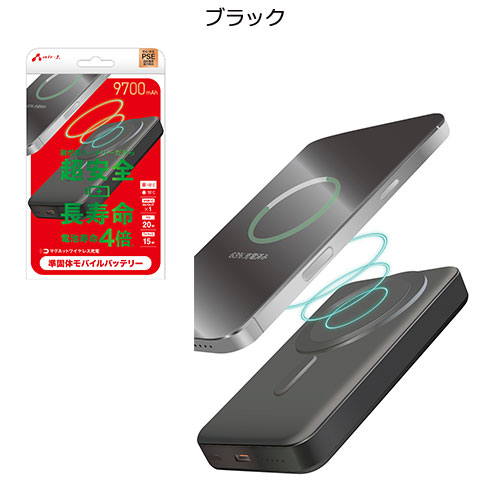 エアージェイ 準個体モバイルバッテリーマグセーフ対応9700mA