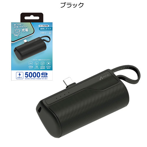 USB-Cコネクター内蔵で、スマホに直挿しできる5000mAhの約104.5gモバイルバッテリーです。本体充電用ケーブルも内蔵しており、ケーブルを持ち運ぶ必要がありません。