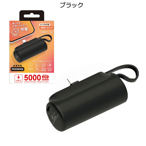 USB-Cコネクター内蔵で、スマホに直挿しできる5000mAhのモバイルバッテリーです。最大20WのPD急速充電に対応し、パススルー機能や2台同時充電も可能な超軽量モデルです。