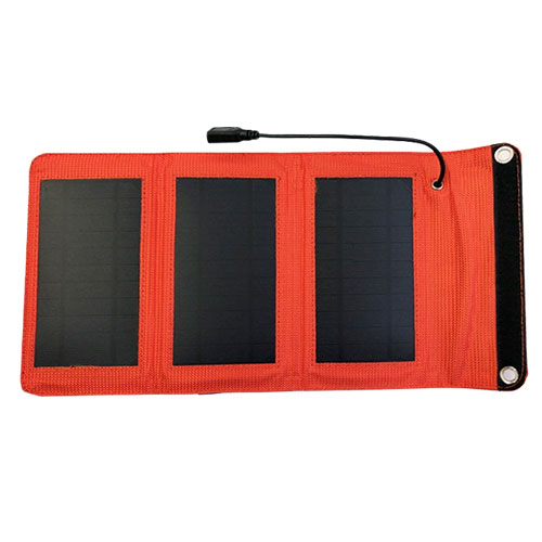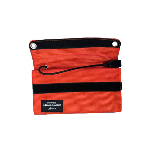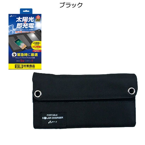 太陽光でスマホを直接充電できる、最大5W出力のポータブルソーラーチャージャーです。薄型・軽量の折りたたみ式で持ち運びに適したエントリーモデル。非常用電源として役立ちます。