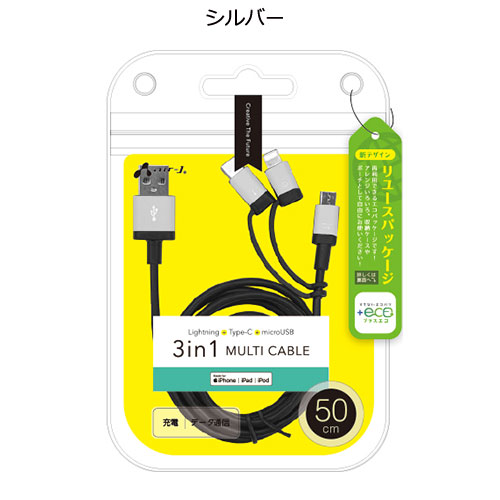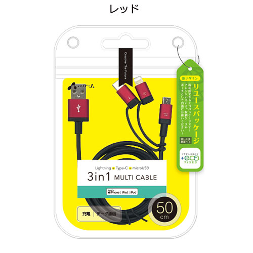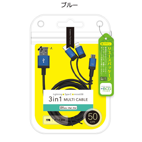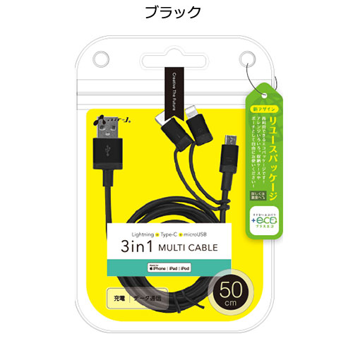 エアージェイ【+ECO】3in1マルチケーブル(micro+Type-c+Lightning) 50cm