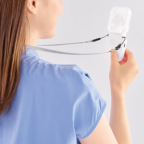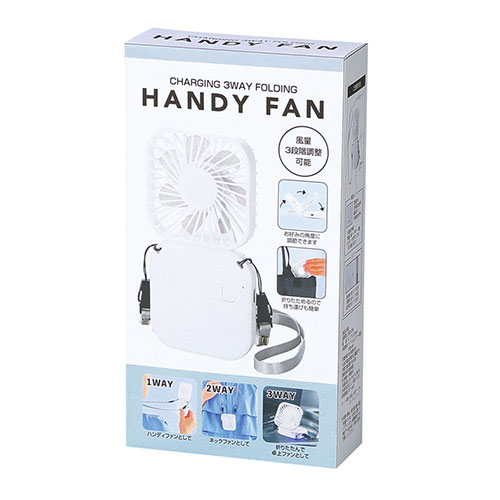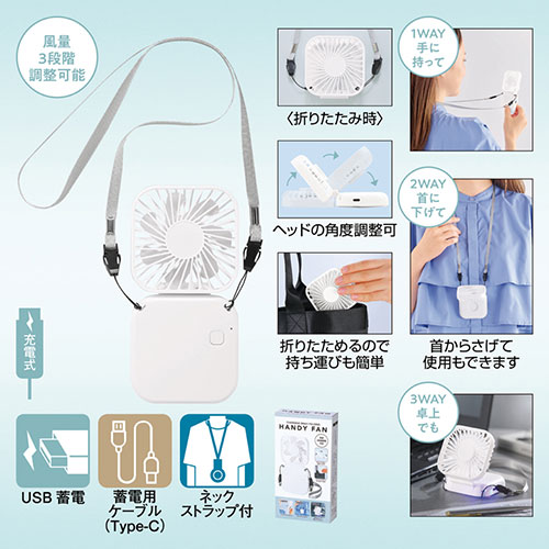 充電式3WAY折りたたみハンディファン(ネックストラップ付き)