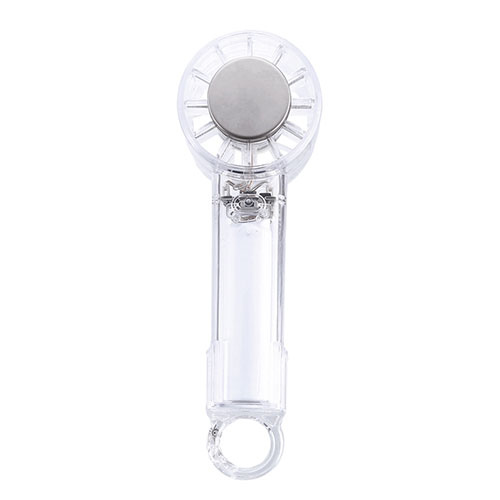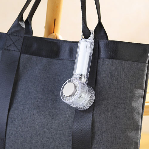 涼しげなスケルトン仕様が目を引く、フォトジェニックな充電式ハンディファン。冷却プレートと送風のダブル効果で涼しく、便利なカラビナ付きで持ち運びもスマートな一品です。