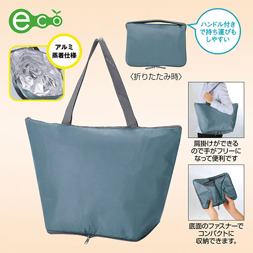 コンパクトに折りたためて持ち運びに便利な、シンプルデザインの保冷温バッグ。内側のアルミ蒸着フィルムが温度をキープし、お買い物やランチ、ちょっとした外出に重宝します。