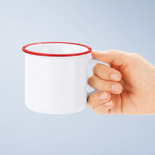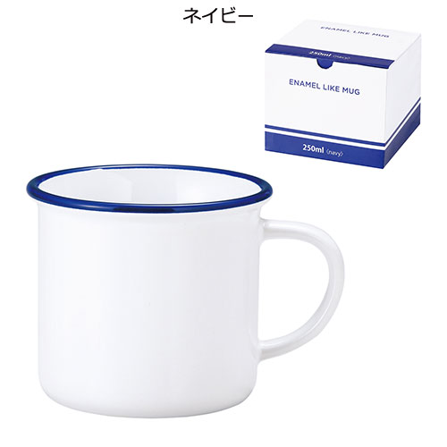 レトロで温かみのあるホーロー調の風合いが懐かしくも新鮮な印象を与えるデザインマグ。シンプルながら存在感があり、名入れが美しく映える仕様が魅力。ノベルティとしてもおすすめです。