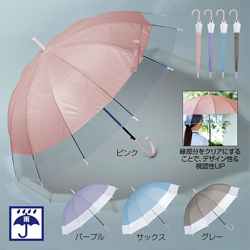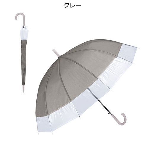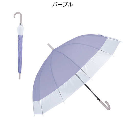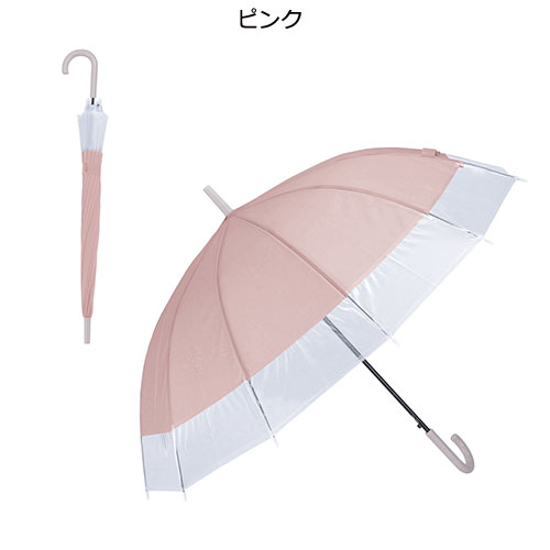 グラスファイバー製の12本骨を採用し、風に強く高い耐久性を誇るジャンプ傘。クリアとカラーを組み合わせたバイカラーのデザインが、雨の日の装いにさりげないセンスをプラスします。