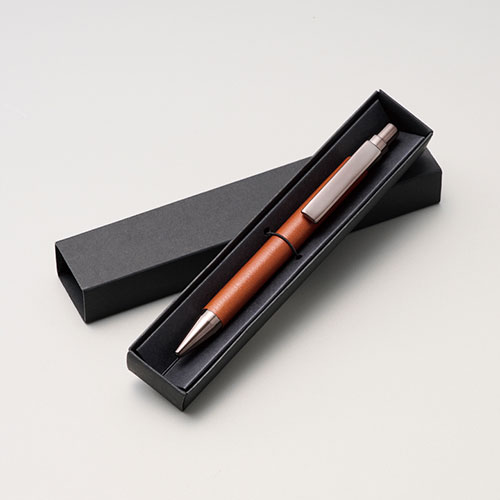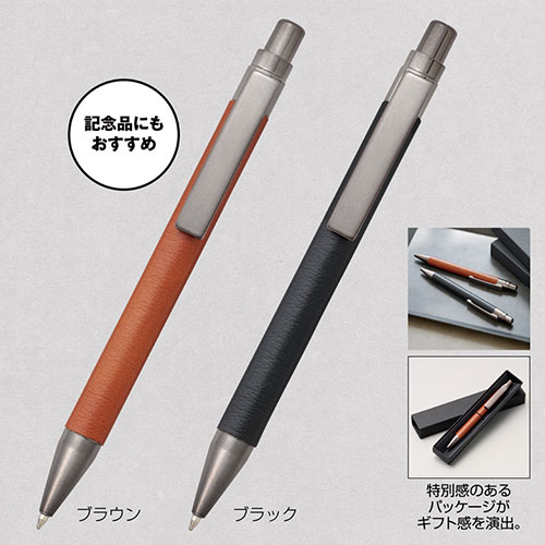 本体に合皮を巻くことで、高級感あふれる上質な質感を再現したレザー調ボールペン。手に馴染む心地よい手触りと、お洒落で落ち着いたデザインがビジネスシーンに品格を添えます。