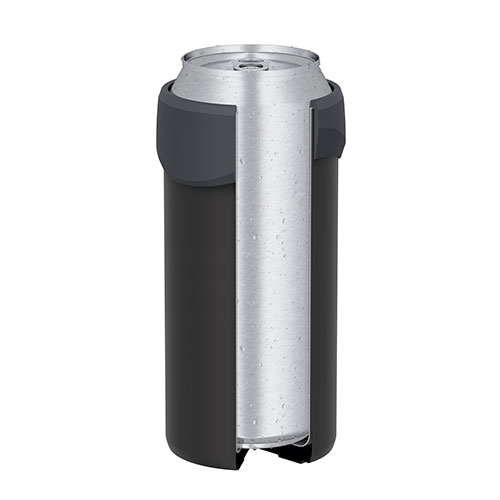 500ml缶がすっぽり入り、飲み頃の温度をキープする保冷ホルダー。ラバーリングを外せばタンブラーとしても使えます。室内から屋外まで幅広く活躍する便利な2WAY仕様。