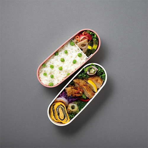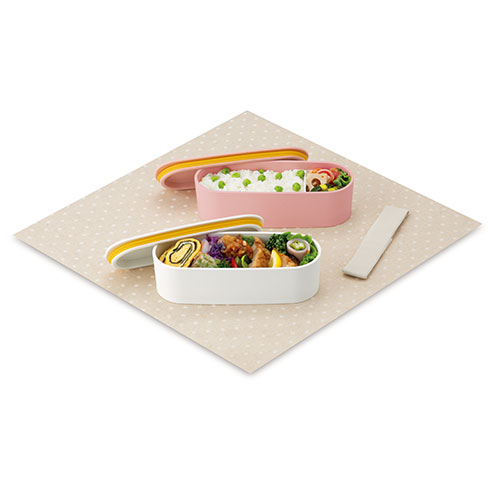 カバンにすっきり収まるスリムな2段式お弁当箱。角のない丸みのあるデザインで洗いやすく、食洗機にも対応しています。600mlの程よい容量で、毎日のお手入れも簡単です。