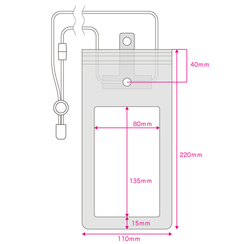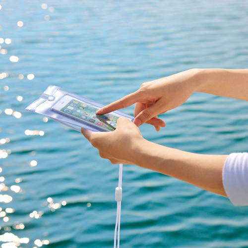 大きめのスマホでもしっかり収納できるためお風呂などでも使用すること可能でとっても便利な防滴ケースです。カラーバリエーションはホワイトとブルーの2色展開から自由に選択可能。