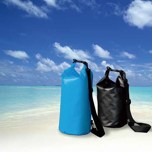 海や川などといった水辺でのレジャーにおすすめの防滴性のある5リットルサイズのビーチバッグです。カラーバリエーションはホワイト、ブルー、ブラック、カーキの4色展開です。
