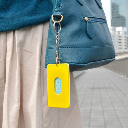 キーホルダー型で鍵などと一緒にしておくことも出来る、色合いも可愛らしいパスケースです。カラーバリエーションはイエロー、ブルー、グリーンの3色展開。是非ご活用ください。