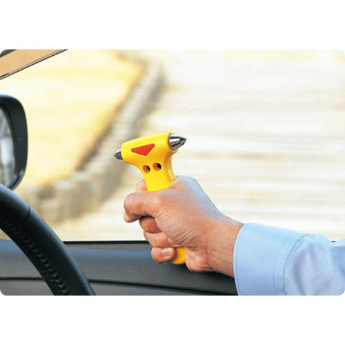 車内に閉じ込められるという不測な事態に役立つ、シートベルトを切ったり、窓を割るのに最適な緊急脱出ハンマーです。防災イベント等での特典用などしても人気のアイテムです。