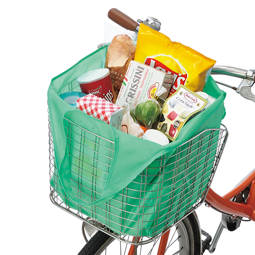 マチが広く買い物カゴや自転車カゴにぴったり合うため、とっても使い勝手の良い携帯用エコバッグです。イベントやキャンペーンのちょっとした特典用としても喜ばれますのでおすすめです。