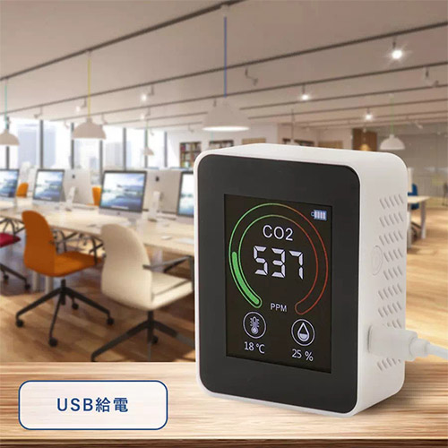 施設や店舗内の換気状況がひと目でわかるためとても便利なCO2濃度測定器です。表示も見やすい上に誰でも手軽に扱うことが可能。見た目もシンプルですっきりしています。