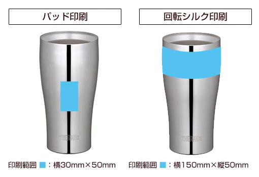 タンブラーなど直径が違うアイテムは、印刷箇所により印刷可能幅が異なることがあります。