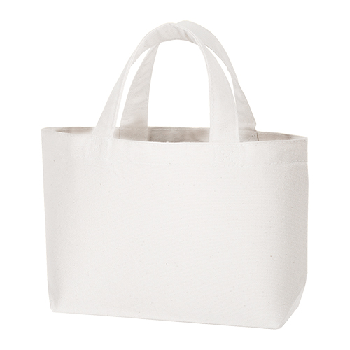 12オンスのしっかりとした厚みのあるキャンバス素材を使用したシンプルなトートバッグです。マチ付きのため見た目以上に容量があります。こちらはばらまき用に最適なSSサイズです。