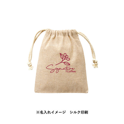 地球環境に優しいリサイクルコットンを使用した、上品でオシャレな霜降り調生地が特徴のSSサイズ巾着です。オリジナルの名入れプリントも可能なため、ギフトラッピング用などにおすすめ。