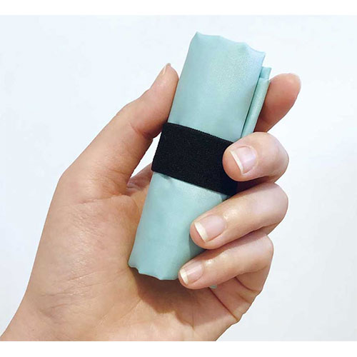 ミニサイズのコンパクトマイバッグ。くるくる丸めて袋の底にあるゴムバンドで留めるだけでコンパクトな手のひらサイズになるため携帯に便利。カラー展開も豊富でノベルティ用にもおすすめ。