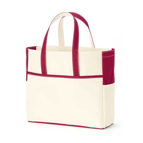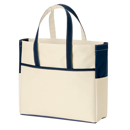 シンプルにすっきり見せつつもオシャレな配色がポイントのトートバッグです。容量もたっぷり入りますので通勤や通学用にも最適ですし、ペットボトルも入るサイドポケット大変便利かと思います。