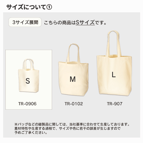 様々なイベントやキャンペーンのノベルティグッズ、ショップのオリジナルアイテム、ショッパー等、あらゆるシーンで利用されるシンプルなコットンバッグ。こちらは手軽感のあるSサイズです。