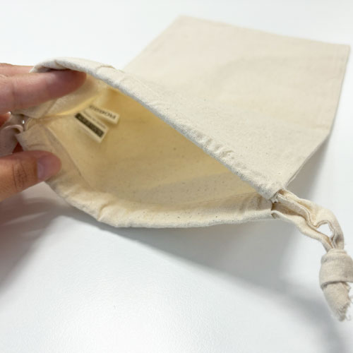 500mlペットボトルが入る小さめサイズのエココットン巾着。オリジナルのプリント印刷を施して、販促・ノベルティの他に、雑貨や小物などのギフト包装用としてもオススメです。