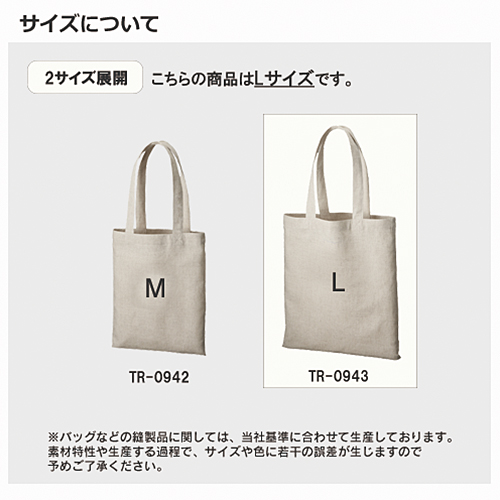 コットンとリネンの混紡素材が醸し出す素朴感がなんともオシャレなトートバッグのLサイズです。オリジナルデザインの名入れプリントも可能ですので是非、ノベルティ等にご活用ください。