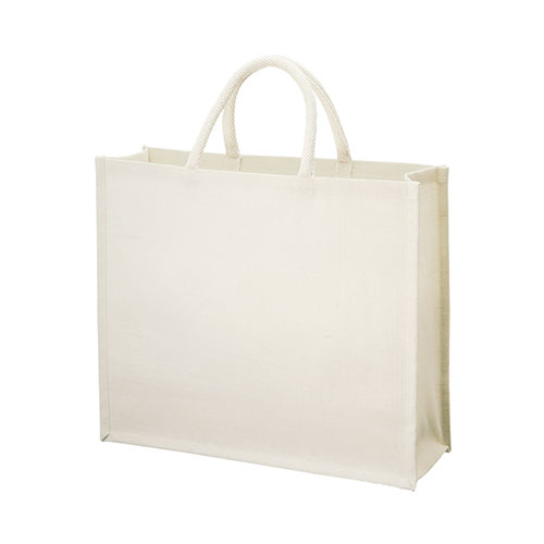 自然でざっくりとした雰囲気を醸し出すジュートと呼ばれる麻素材を使用したスクエアタイプのLサイズトートです。オリジナル名入れも可能なため、ノベルティグッズ等としてもとても人気です。