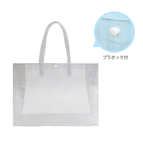 レジャーやスポーツにも最適な、A3サイズの書類が入る、透明なビニール素材を使ったクリアバッグです。タオルや衣類もたっぷり収納できます。荷物が底に沈まず傾きにくい、底板付きです。