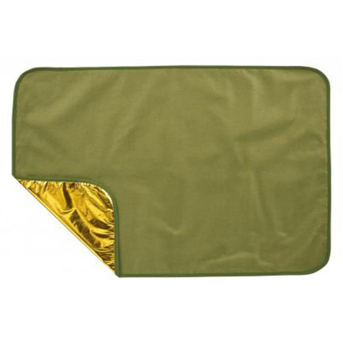 アルミフィルム・不織布・フリースの三層構造であたたかい、金色のブランケット。熱を逃しにくく、床敷き・肩掛け・ひざ掛けなど多用途で使えます。アウトドアや災害時に重宝します。