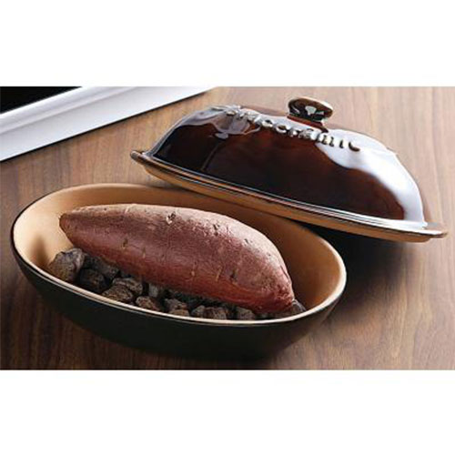 電子レンジで手軽においしく焼きいもを楽しめる、陶製の焼きいも器です。陶器+天然石がやさしい味わいに仕上げてくれます。じゃがいも、とうもろこし等でも同等に楽しむことができます。