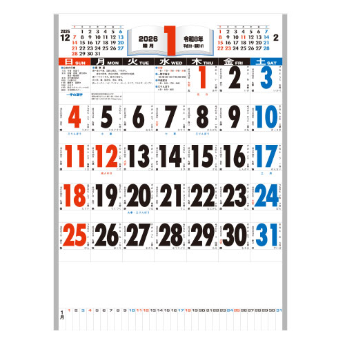 環境対応型のホットメルト製本による、見やすくて使いやすい3色文字カレンダーの決定版。毎月テーマを絞った難読漢字が1日1語入っていて漢字の知識もつく付加価値の高いカレンダーです。※掲載している価格は、100冊の場合の1冊単価になります。価格については、お見積り依頼後に担当スタッフから別途ご案内いたします。